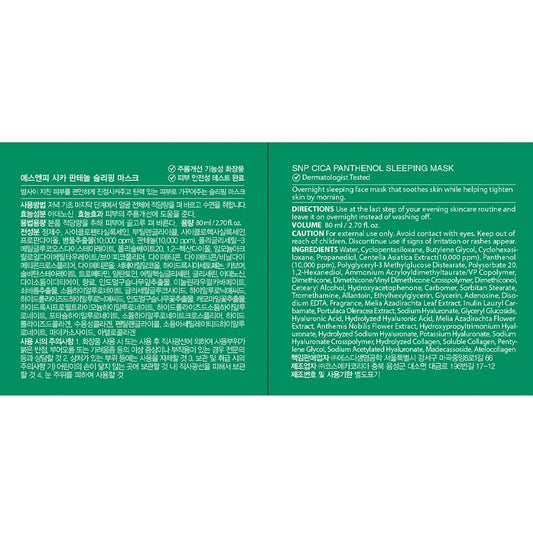 CICA Panthenol Moisturizing Cream | Overnight Face Cream | Soothing, Moisturizing, and Hydrating Facial Mask with Hyaluronic Acid | Korean Skin Care Overnight Moisturizer | 2.70 Fl Oz